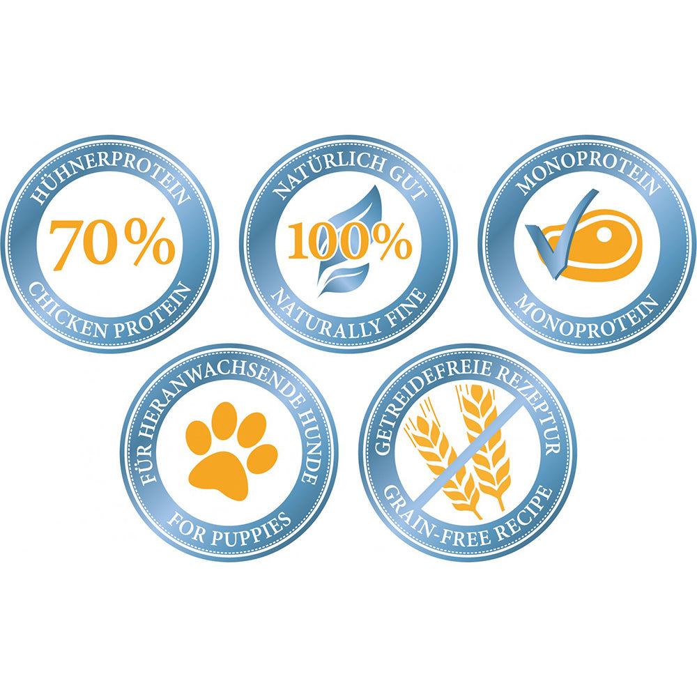 Getreidefreies Trockenfutter mit Huhn für Welpen und heranwachsende Hunde