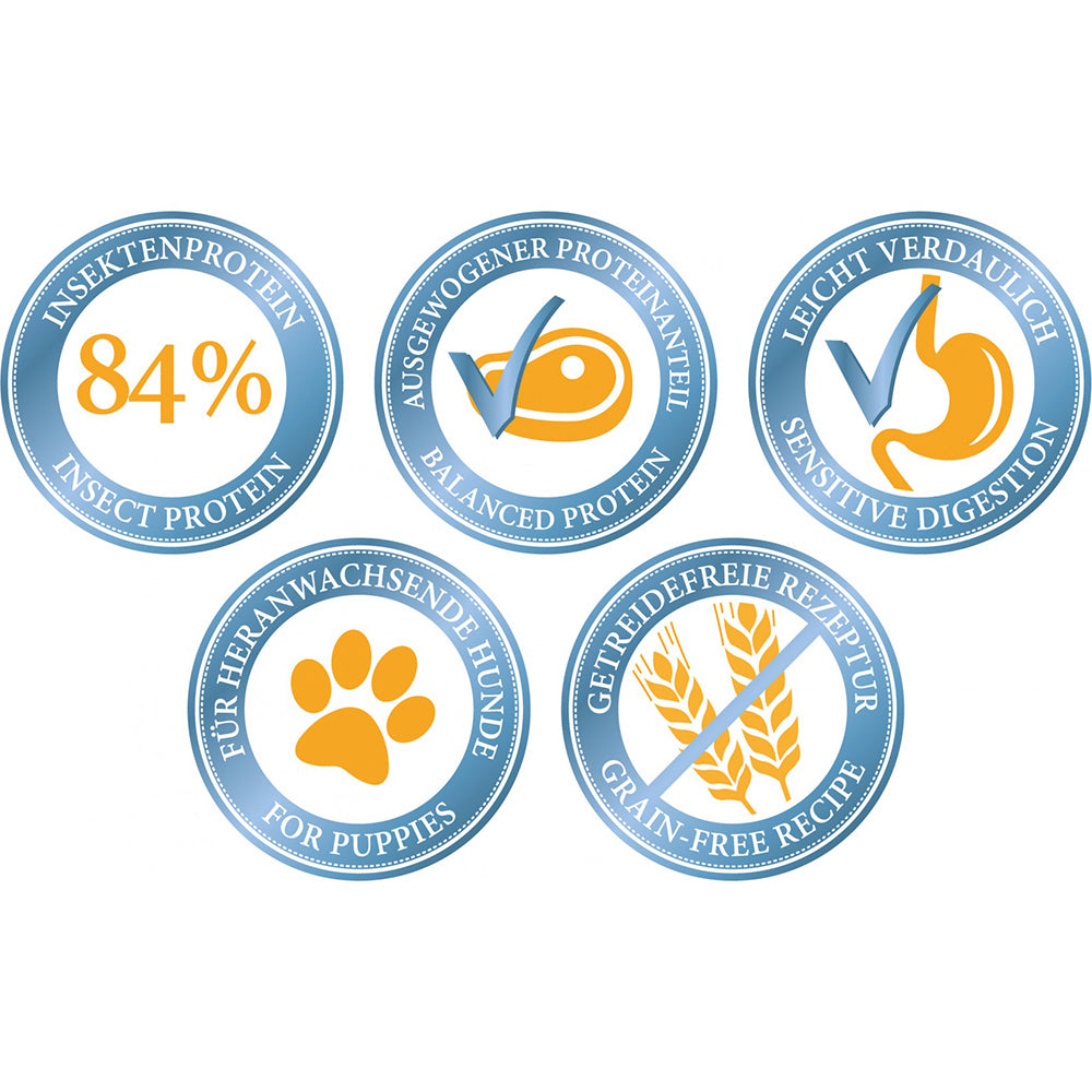 Gesundes Trockenfutter mit Insektenprotein für Welpen und heranwachsende Hunde