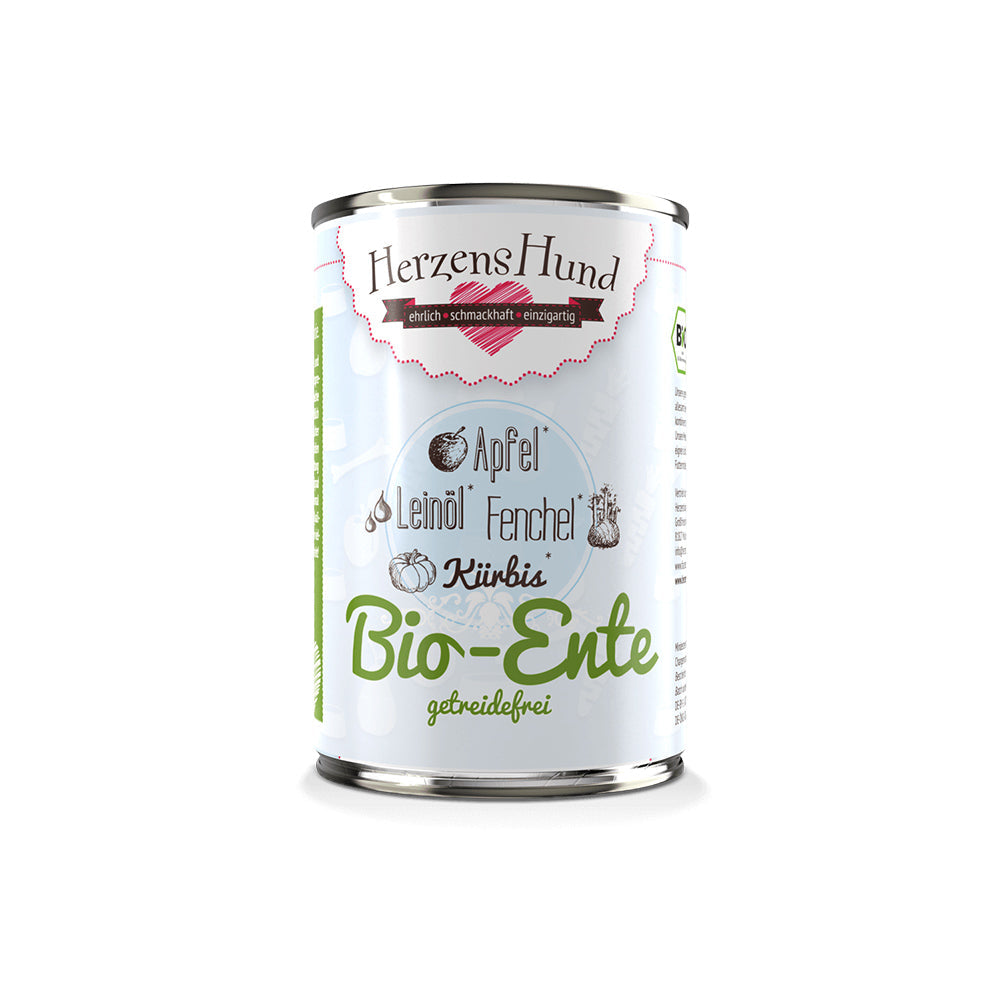 HerzensHund Bio-Ente mit Bio-Gemüse - getreidefrei ist ein hochwertiges Bio-Hundefutter mit 65% Bio-Entenfleisch und einer durchdachten Mischung aus Bio-Gemüse. Diese getreidefreie Rezeptur bietet einen ausgewogenen Fettgehalt und eignet sich besonders für Seniorenhunde und Welpen, aber auch für alle anderen Hunde, die eine nährstoffreiche Ernährung benötigen.