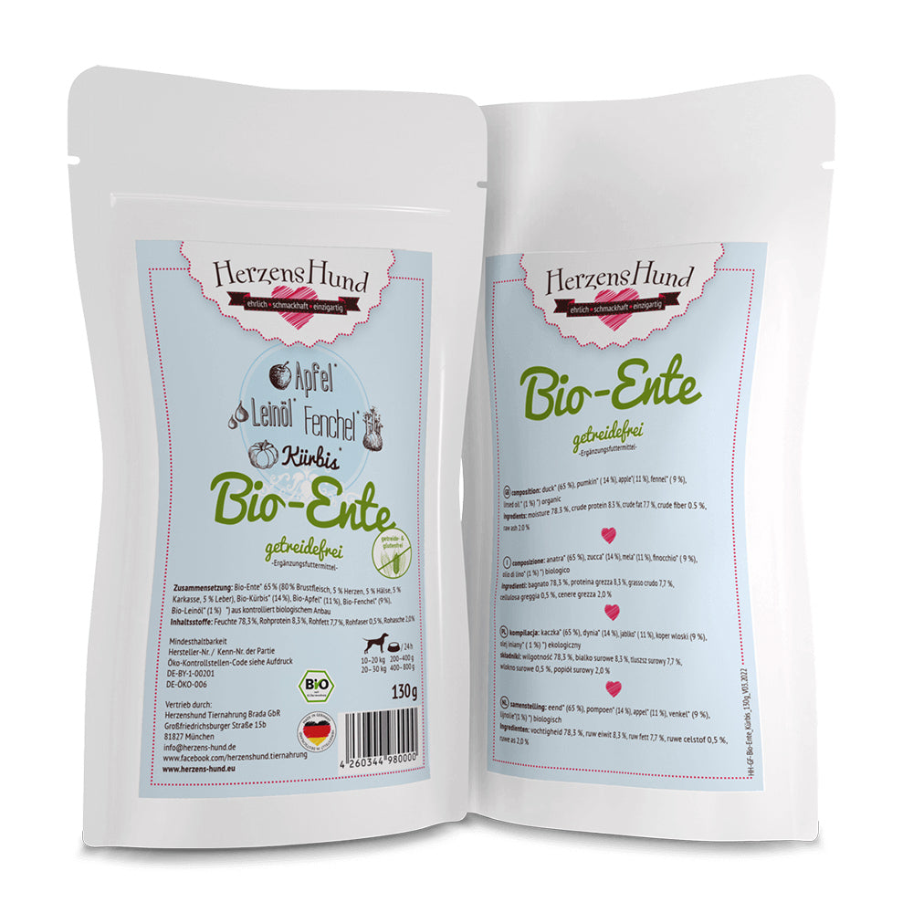 Melden Sie sich an, um zu bestellenHerzensHund Bio-Ente mit Bio-Gemüse – Premium-Ernährung getreidefrei